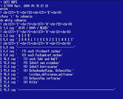 DEMO.PRG by Mario Leubner. Below on the left in the picture, the ESC sequences are inserted between the program code by